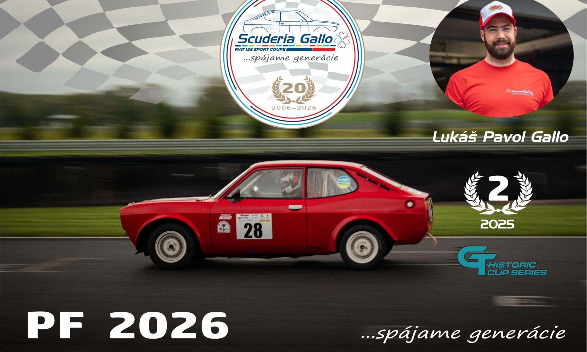 vnuk Mc.Lukáš GALLO , ktorý úspešne absolvoval v sezóne 2025 seriál medzinárodných pretekov GT HISTORIK CUP, v ktoromsa umiestnil na 2 mieste v celkovom hodnotení